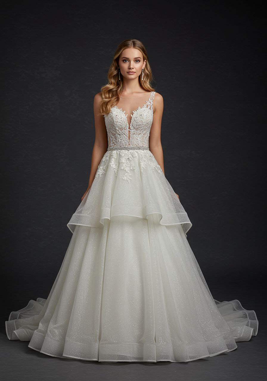 Sleeveless Layered Wedding Dress