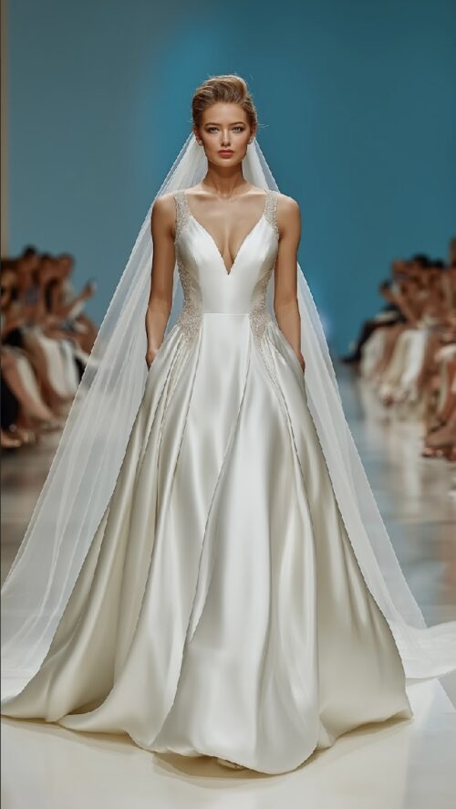 Solid White A Line Wedding Gown