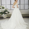 The silky taffeta waistline and ruched bodice of the tulle ballgown elegantly and sartorially highlight your shape. Juniper has a straightforward, enduring charm. Delicate embellishments on the back bodice nicely highlight the entire attractiveness. This floor-length, sleeveless wedding gown is finished with a chapel train and skilfully made from premium chiffon, providing comfort and great workmanship.