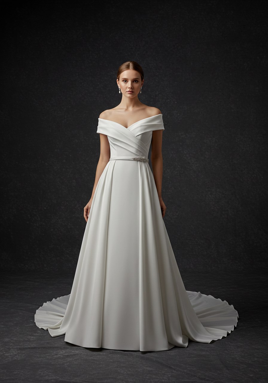Elegant Solid White Off Shoulder Wedding Dress