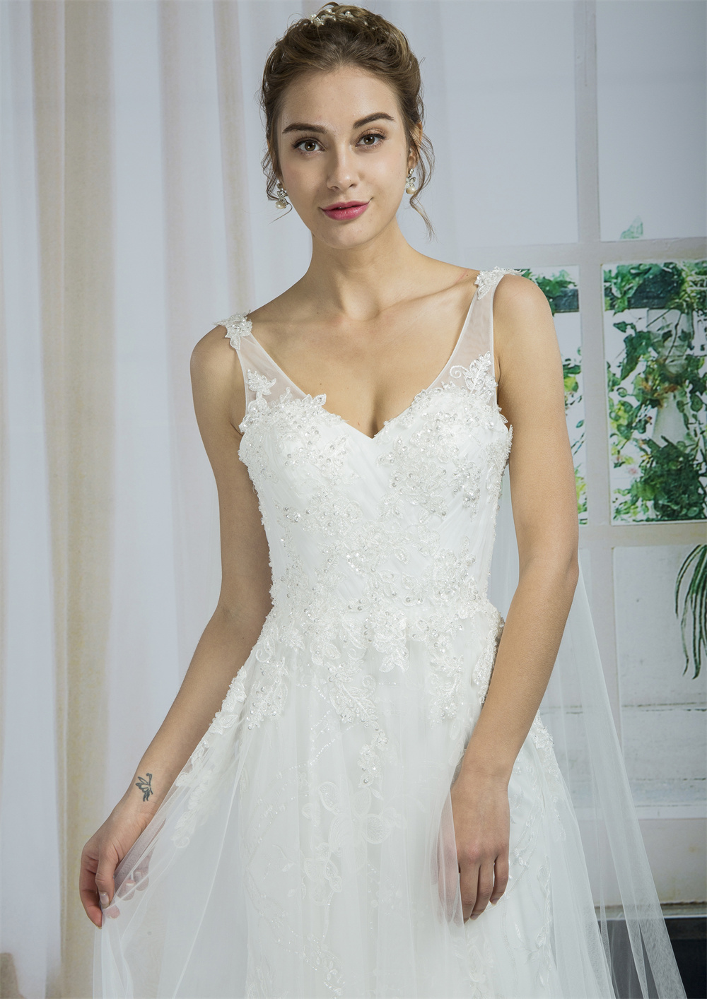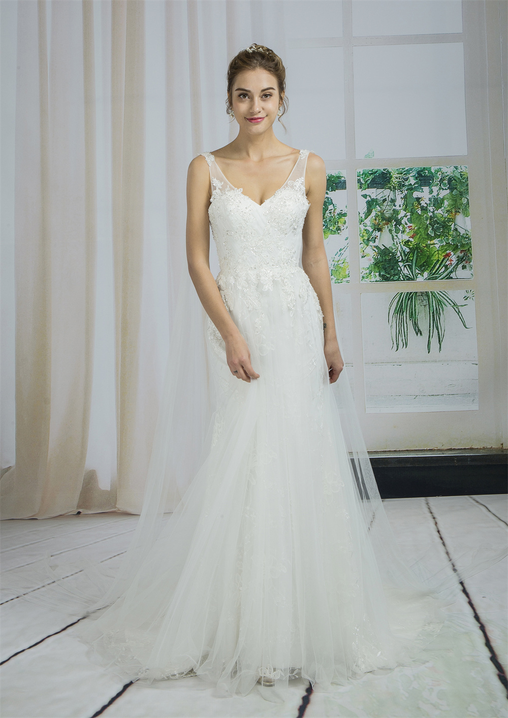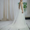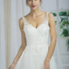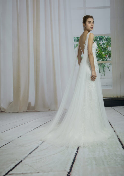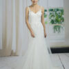 Make a statement as you walk down the aisle in this bridal gown. Professionally crafted from the finest chiffon, this floor-length, sleeveless wedding gown with a chapel train promises comfort and exceptional workmanship.